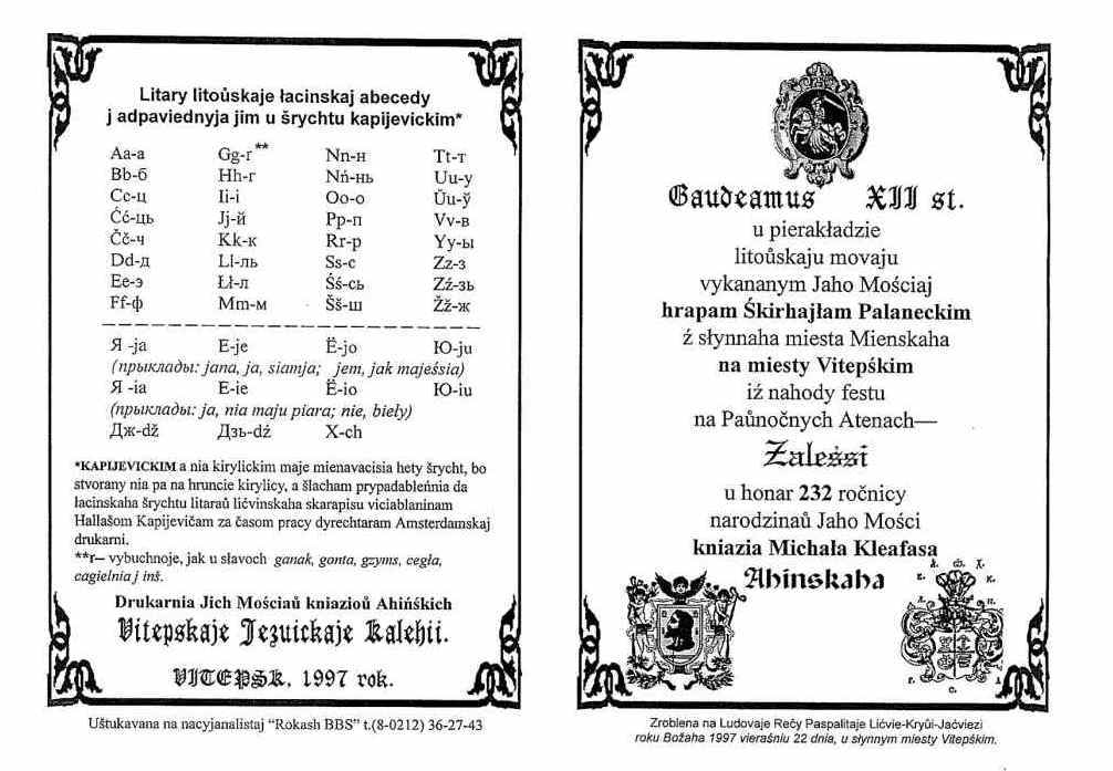 łacinki. Jon pierakłaŭ i vydaŭ na arkušy svoj varyjant studenckaha GAUDEAMUSa. Naturalny lićvin-biełarusiec, jak skazali by raniej.